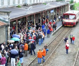 Nachdem sich der Zug der Bürger entlang der alten Bahnstrecke zum Sebnitzer Bahnhof begeben hatte, sprach Herr Oberbürgermeister Ruckh über die Anstrengungen der Stadt Sebnitz zur Unterstüzung des Projektes.